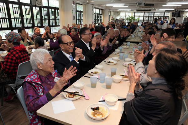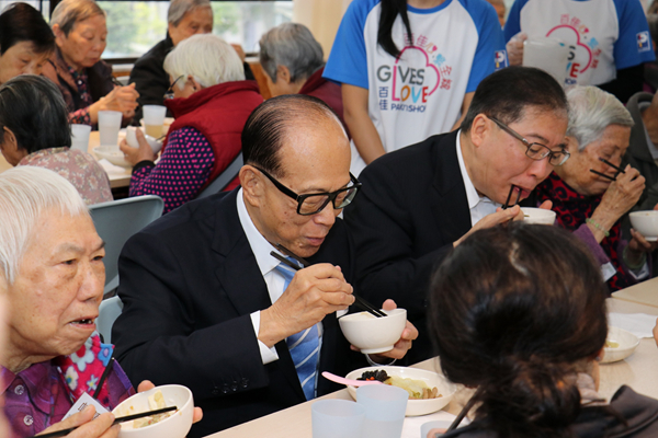 李嘉誠到訪惜食堂,與一眾長者拜年進餐。