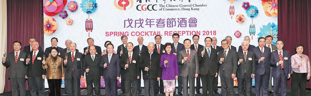 【香港商報网訊】記者霄虹、李嘉倩報道:香港中華總商會「戊戌年春節酒會」昨日假香港君悅酒店宴會大禮堂舉行。全國政協副主席董建華、特區行政長官林鄭月娥、外交部駐港特派員公署特派員謝鋒、中聯辦副主任譚鐵牛、解放軍駐港部隊副司令員鄭國躍、政務司司長張建宗、財政司司長陳茂波、律政司司長鄭若驊及立法會主席梁君彥應邀主禮,并聯同該會會長蔡冠深等首長向來賓祝酒,共賀新春,冠蓋雲集,場面熱鬧。