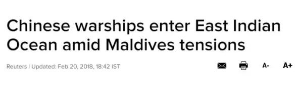 包括《今日印度》、《印度教徒报》、《印度时报》在内的媒体言之凿凿地论断:中国军舰意在掌控马尔代夫并威慑印度。