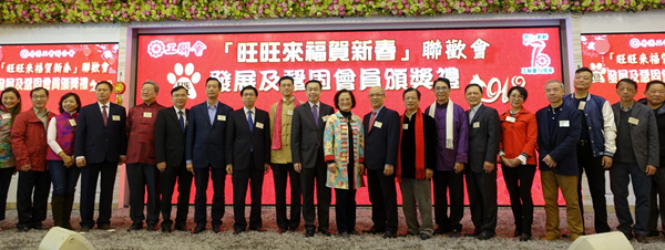 工聯會舉行新春聯歡會暨頒獎禮,圖為一眾賓主於台上合照。