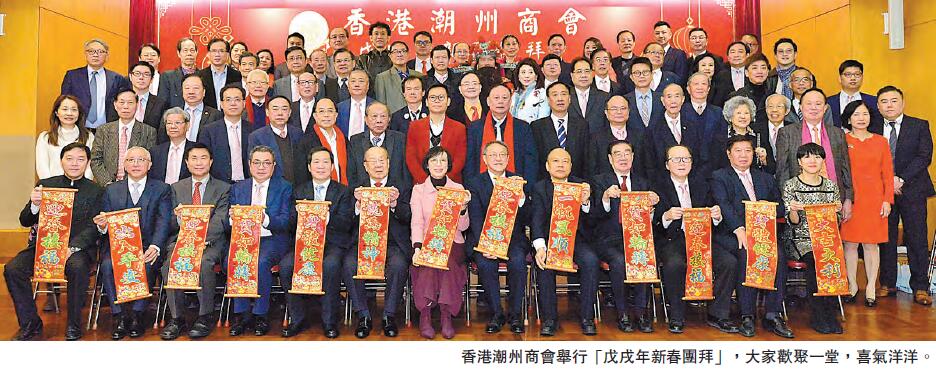 【香港商報网訊】記者曾美玲報道:香港潮州商會於正月初九假潮州會館大禮堂舉行「戊戌年新春團拜」,食物及衛生局局長陳肇始,中聯辦社聯部副部長黎寶忠、新界工作部副部長張肖鷹、港島工作部副部長陳旭斌、九龍工作部副部長王小靈,中西區民政事務專員黃何詠詩等應邀主禮。該會副會長林宣亮與一眾首長向來賓及鄉親拜年,逾百人歡聚一堂,同賀新禧。