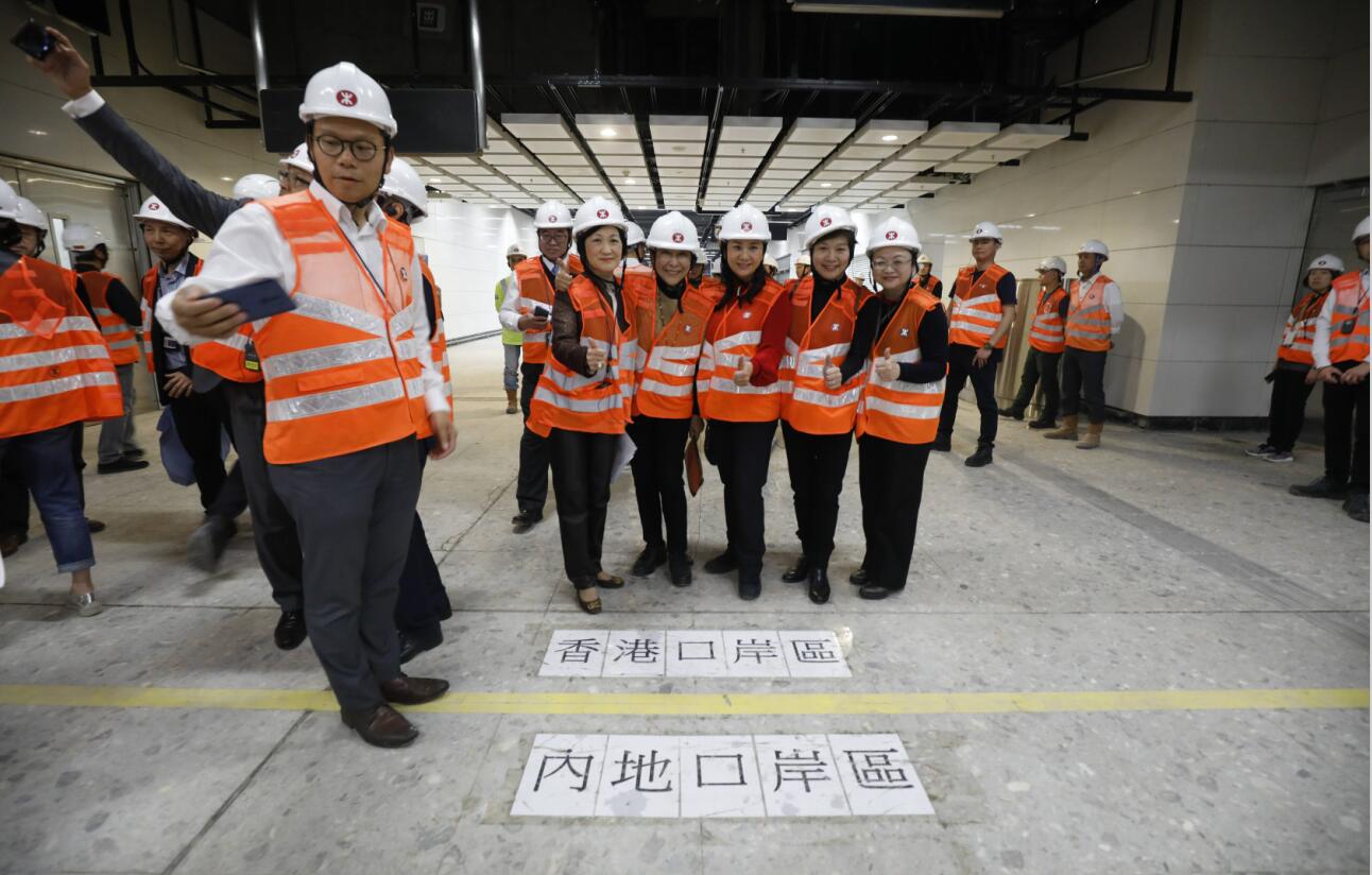 立法會兩個小組委員會共31位議員,昨午在陳帆、律政司司長鄭若驊、保安局局長李家超的陪同下參觀高鐵西九龍站。參觀團先走一次離境路線,議員進入內地口岸區後,再落到月台層,將來月台屬內地管轄,路軌屬香港管轄。議員之後又上到入境層,經內地口岸區進入香港區域。
