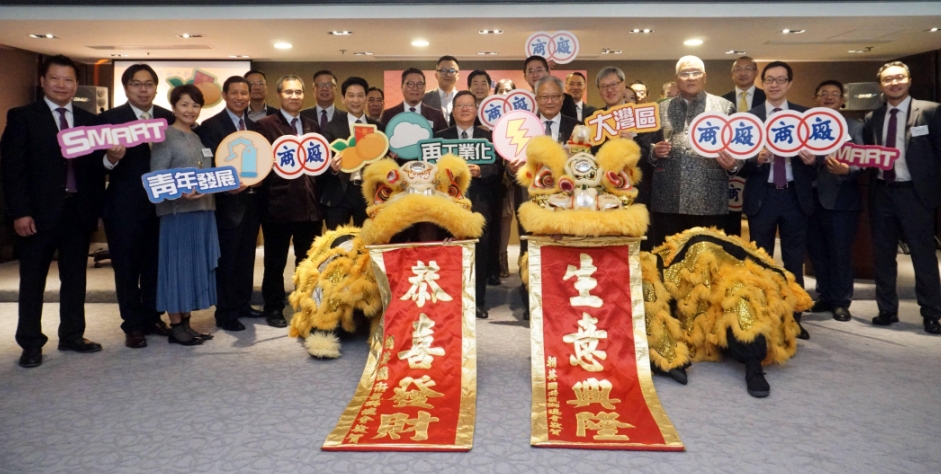 香港中華廠商聯合會昨日假廠商會會議廳舉行「戊戌年新春團拜」,一片喜气洋洋。