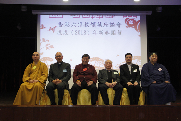 【香港商報網訊】由佛教、天主教、孔教、伊斯蘭教、基督教及道教組成的「香港六宗教領袖座談會」,日前舉行一年一度的新春團賀。六宗教領袖代表,香港佛教聯合會會長寬運法師、天主教香港教區副主教蔡惠民、孔教學院院長湯恩佳、中華回教博愛社秘書長楊義護、香港基督教協進會主席牧師蘇成溢、香港道教聯合會主席梁德華在新春佳節,為香港社會繁榮、安定和諧送上祝福致賀。