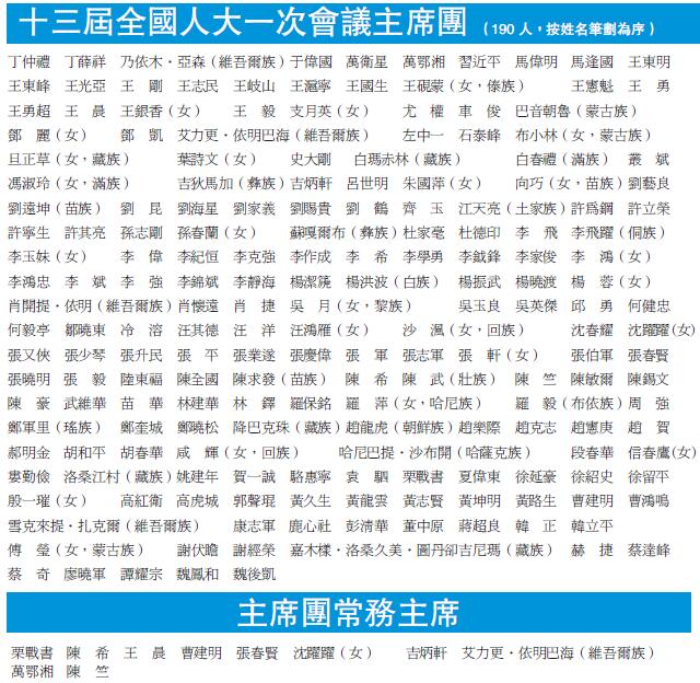 人大會今開幕 議程共10項 栗戰書等10人任主席團常務主席