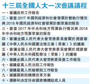 預備會議通過的十三屆全國人大一次會議議程共有10項。