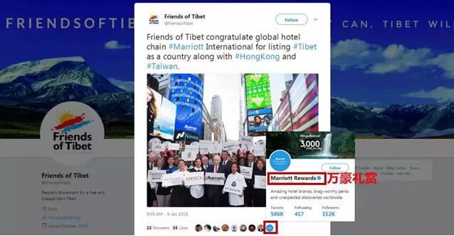 今年1月,全球连锁酒店万豪国际集团在中国引发多方愤怒,其在会员邮件和App注册页面将港澳台及西藏列为“国家”,严重违反中国有关法律法规。就在万豪多次道歉试图平息来自中国的愤怒时,“万豪礼赏”官方推特账号又被发现给一条“藏独”推文点赞。据美国《华尔街日报》3月4日报道,点赞的员工已被万豪集团解雇。
