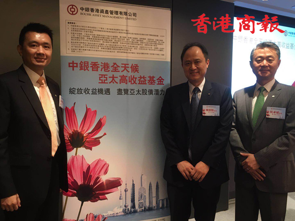 中銀香港資產管理宣佈推出「中銀香港全天候亞太高收益基金」,基金主要是捕捉亞太區內的高息投資機會,投資於高息股票、高息債券、房地產投資信託及投資評級債券。該基金設有美元、港元、澳元(對沖)及人民幣(對沖)四種貨幣類別,首次最低認購金額分別為1000美元、10000港元、1000澳元及1000元人民幣,銷售期由今年起至本月23日。