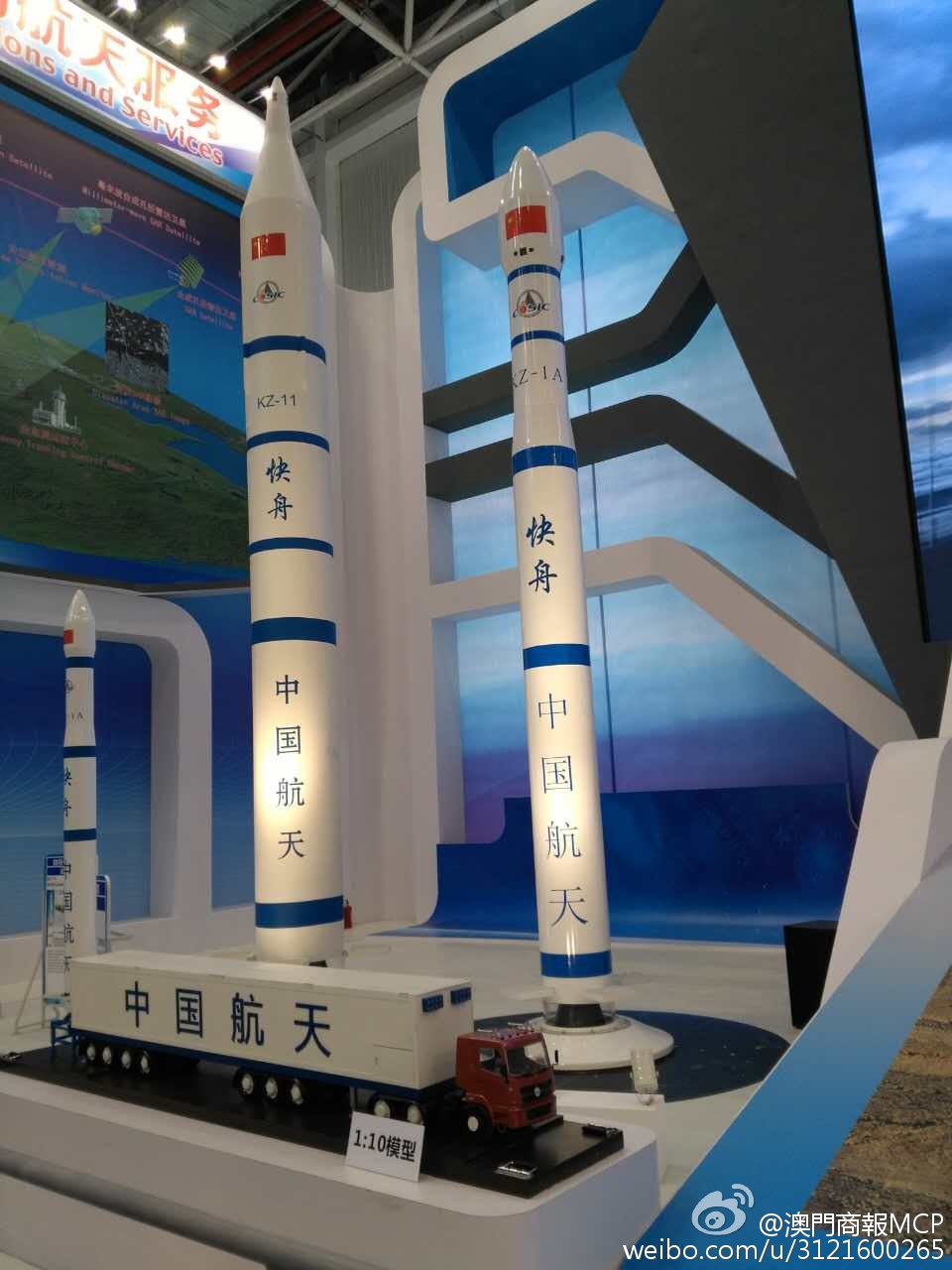 航展上展示的「快舟1」与「快舟11」模型。