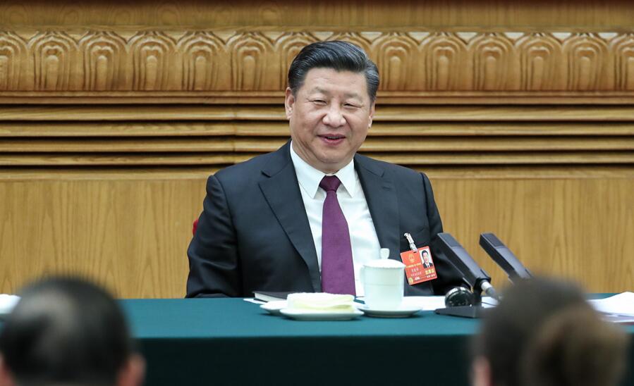 3月5日,中共中央总书记、国家主席、中央军委主席习近平参加十三届全国人大一次会议内蒙古代表团的审议。 新华社记者 谢环驰 摄
