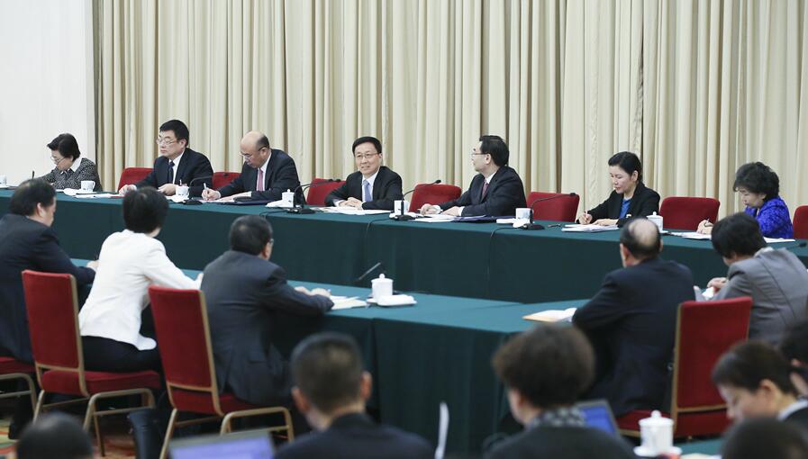 3月6日,中共中央政治局常委韩正参加十三届全国人大一次会议陕西代表团的审议。新华社记者 姚大伟 摄