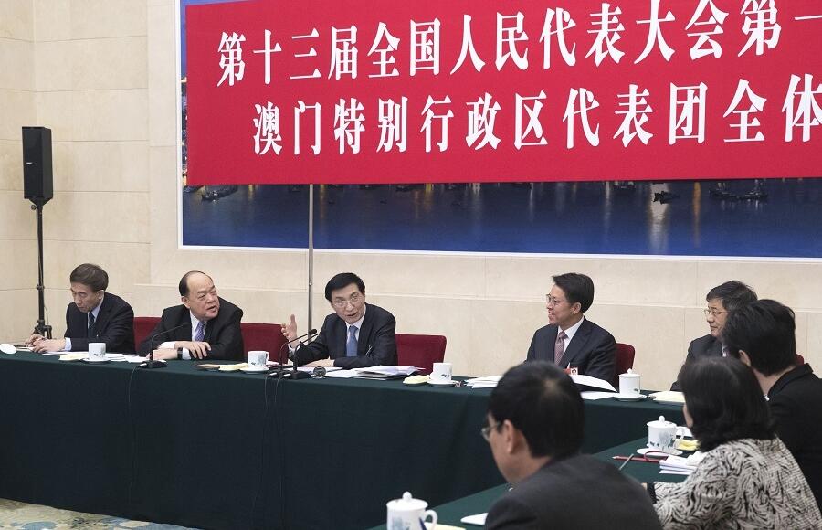 3月6日,中共中央政治局常委、中央书记处书记王沪宁参加十三届全国人大一次会议澳门代表团的审议。 新华社记者王晔摄