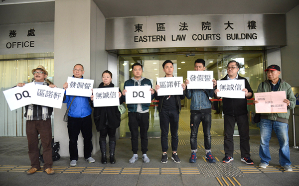 參與請願的市民各人手上均拿着「發假誓」、「無誠信」等標語,又高喊「DQ區諾軒」等口號。民政事務處派出工作人員接收了請願信。司徒先生說,是否取消區的參選資格交由選舉主任處理,但要求區諾軒在24小時內出來解釋及澄清其言論,給市民一個交代,若無視的話不排除會有進一步行動。