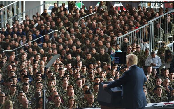 特朗普对在场数千名海军陆战队员说:“我代表美国人民向你们传达一个重要信息,那就是我们支持你们,我们爱你们,而且我们将永远在你们身后。”