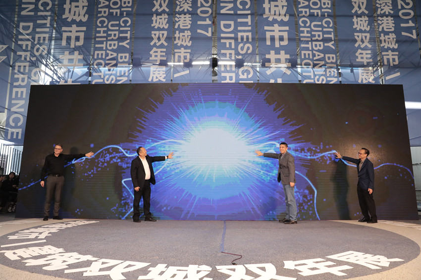 在颁奖环节,嘉宾们为本届合作伙伴、志愿者及优秀参展作品颁发支持贡献类及优秀作品类共9大奖项。随后,深圳城市\建筑双年展组委会副主任、深圳市政府副秘书长徐松明、深圳城市\建筑双年展组委会副主任、深圳市规划国土委主任王幼鹏、香港双年展督导委员会代表、香港建筑师学会副会长李国兴、以及深双学委会代表奥雷·伯曼(Ole Bouman)触动现场大屏幕,共同发出下一届深港城市\建筑双城双年展邀请函,为这项为期三个月的文化界盛事划上完美句号。