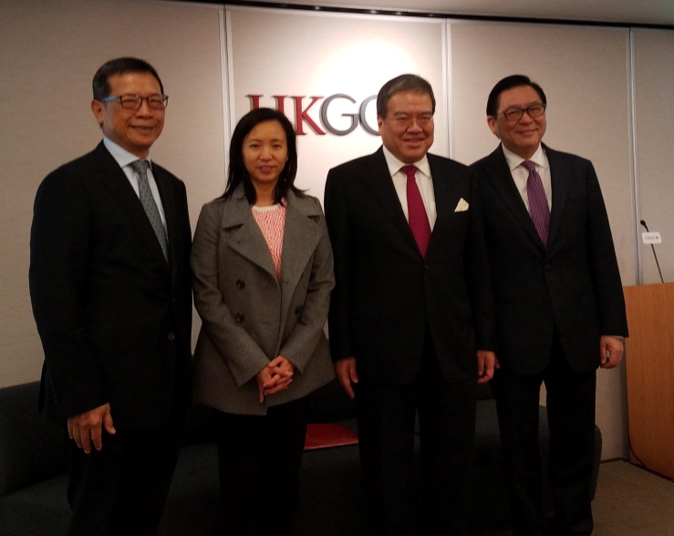 香港總商會昨日举行出席「兩會」分享會,林健鋒(右一)、胡定旭(右二)及许汉忠(左一)出席。