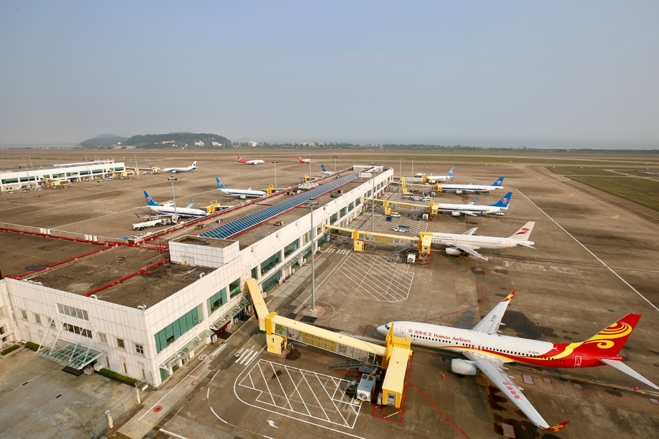 珠海机场停机坪一角。