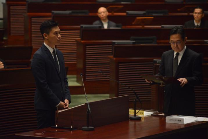 立法會補選當選議員鄭泳舜进行宣誓。记者 蔡启文摄