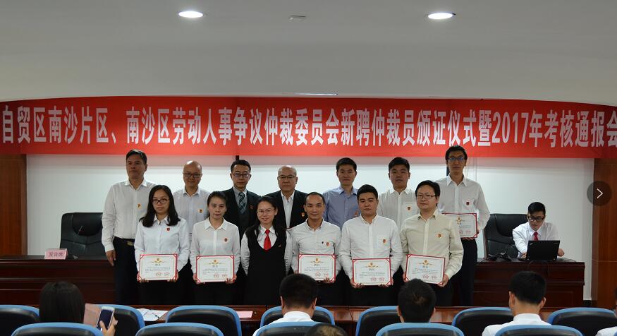 【香港商报网讯】记者李苑立报道:3月23日,自贸区南沙片区劳动人事争议仲裁委员会(以下简称自贸区仲裁委)举行新聘仲裁员颁证仪式。广州全区各行业100多名报名者中有16名仲裁员获考核通过后受聘。