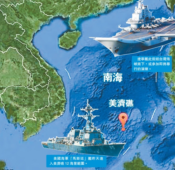 【香港商報网訊】美國海軍驅逐艦昨天再次進入南沙美濟礁12海里範圍,遭到中方兩艘軍艦警告驅離。就在同一天,中國海軍宣布在南海舉行實戰化演練,并表示這是海軍年度計劃內的例行性安排。外界猜測,作為本年度解放軍實戰化訓練中最受關注的首場大戲,遼寧號很可能參與其中,而這將是遼寧號航母首次參加實戰化演習。