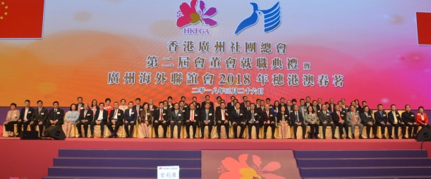 【香港商報网訊】記者李嘉倩報道:香港廣州社團總會第二屆會董會就職典禮暨廣州海外聯誼會2018年穗港澳春茗,日前假香港會議展覽中心舉行,行政長官林鄭月娥,中聯辦副主任何靖,外交部駐港副特派員趙建凱,廣州市政協主席劉悅倫,廣東海外聯誼會副會長李煥春,廣州市委常委、統戰部部長、廣州海外聯誼會會長盧一先蒞臨主禮。港區全國人大代表、霍英東集團行政總裁霍震寰蟬聯香港廣州社團總會新屆會長,廣州市政協委員黃俊康續任主席。