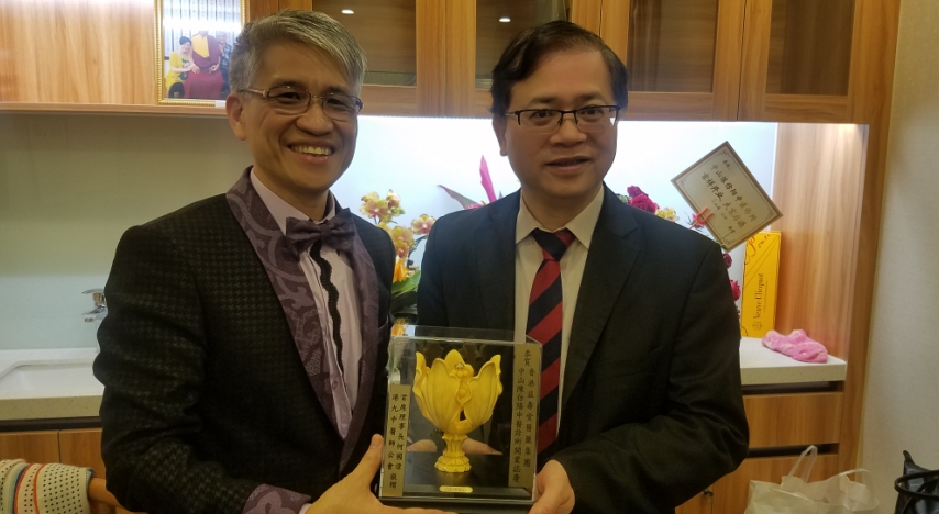 陳仿陽博士(左)希望用「科学中医」技术和丰富的人脉资源回馈家乡。