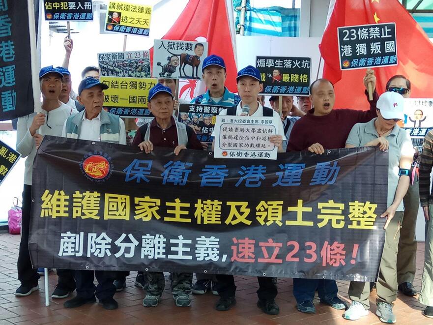 「保衛香港運動」成員促請特首林鄭月娥收回早前稱兩年內都不會為23條立法的言論,希望政府盡快為完善基本法的責任成立23條立法委員會,以彌補打擊和懲罰散播「港獨」分裂國家言論的缺口。