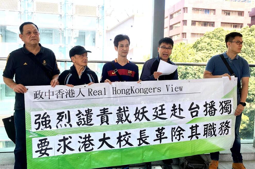 民间團體「政中香港人」一批成員到香港大学谴责戴耀廷鼓吹「港獨」。