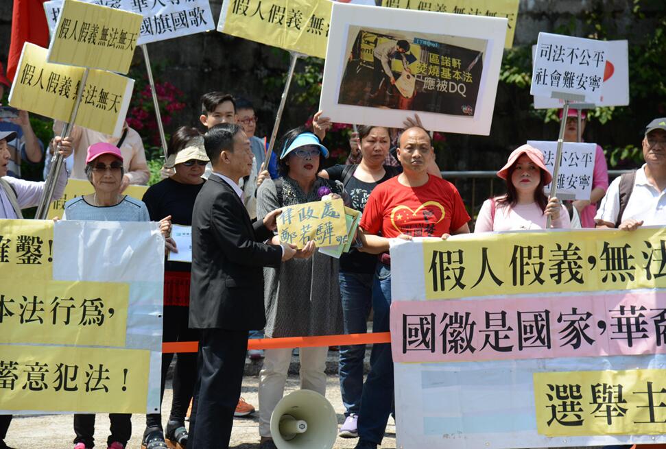 成員沿途高呼「司法不公平,社會難安寧」、「譴責選舉主任,無法無天」、「區諾軒犯法,區諾軒入冊」等口號,然后再游行至警察總部報案離開。