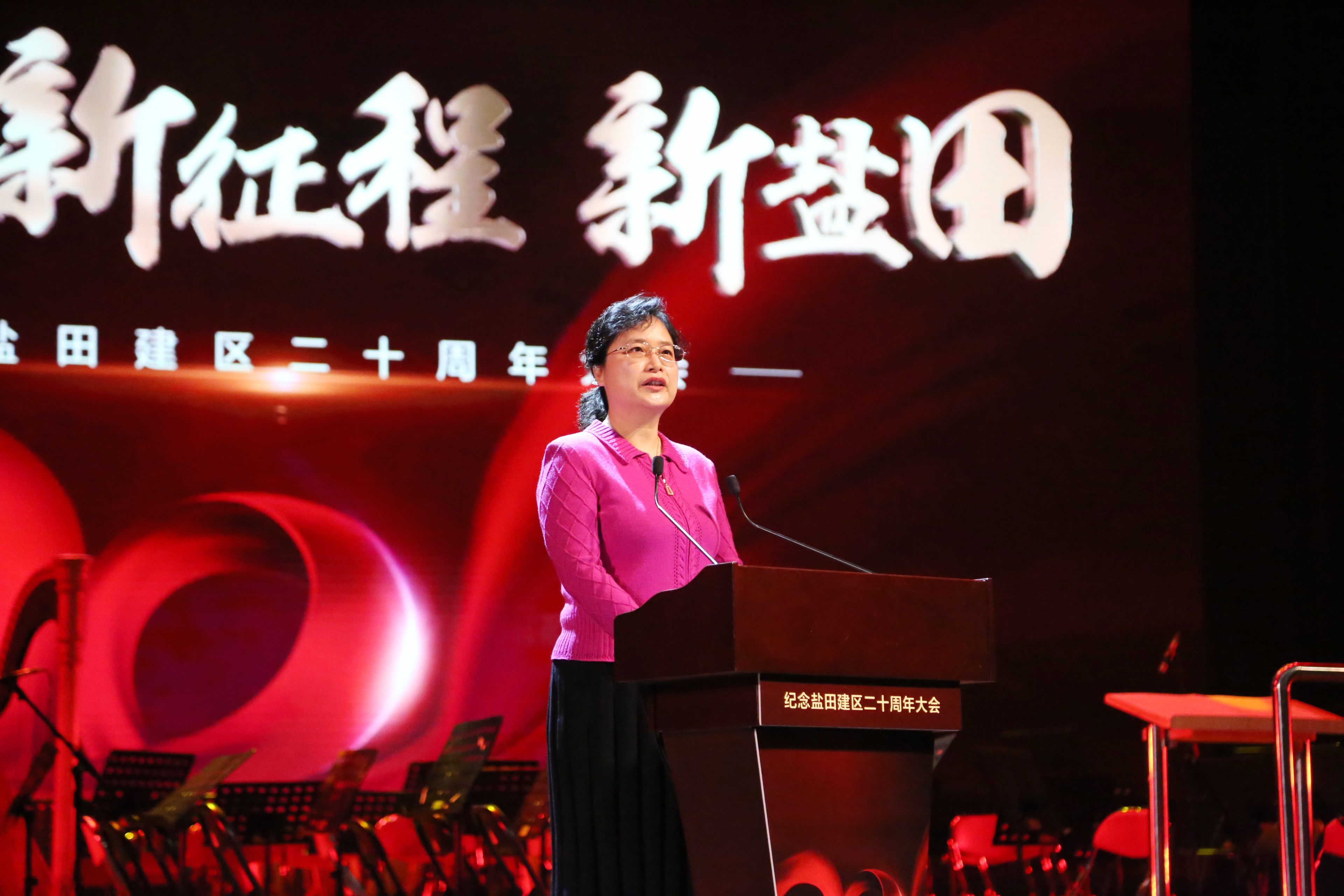 在當天舉行的紀念鹽田建區二十周年大會上,深圳市政協主席、原鹽田區委書記、鹽田區人大常委會主任戴北方,國務院參事、原鹽田區委書記、鹽田區人大常委會主任王京生,原深圳市人大常委會副主任、鹽田區委書記、鹽田區人大常委會主任陳治華,哈工大(深圳)黨委書記、原鹽田區委副書記、鹽田區長吳德林,原鹽田區政協主席張全方,原鹽田區政協主席李秀忠,原鹽田區政協主席鍾瑞興,鹽田區委書記杜玲,鹽田區人大常委會主任梁景海,鹽田區政協主席武威等出席大會,並與鹽田區老領導、社會各界人士、轄區群眾代表共同見證鹽田建區20周年。珠海市委書記、原鹽田區委書記郭永航為大會發來賀信。