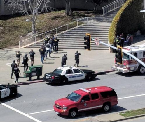 十几辆紧急车辆迅速在YouTube园区聚集。从电视画面上看,警方正在展开系统性搜寻,多数员工举着双手离开了大楼。