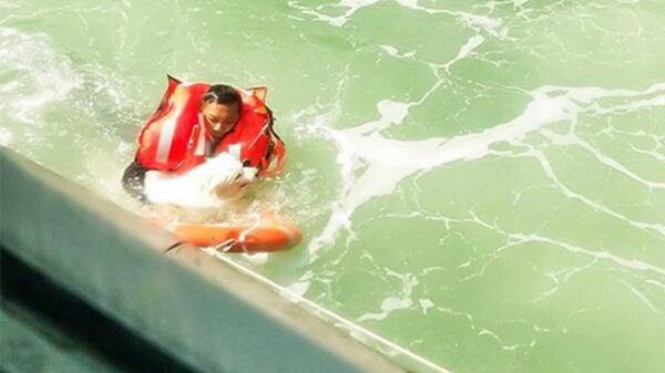 該銀狐犬上周六(31日)曾在尖沙咀墮海。圖:香港警察Facebook