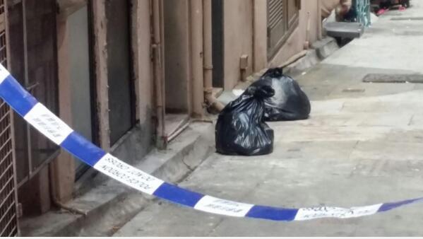 狗屍被黑膠袋包住。