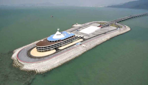 港珠澳大橋共有4個人工島,包括珠海澳門口岸人工島、香港口岸人工島和連接大橋海底隊道段的東、西人工島。接駁香港連接路的東人工島,設計為蠔貝形,施工總面積約10萬平方米。