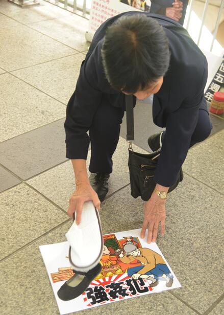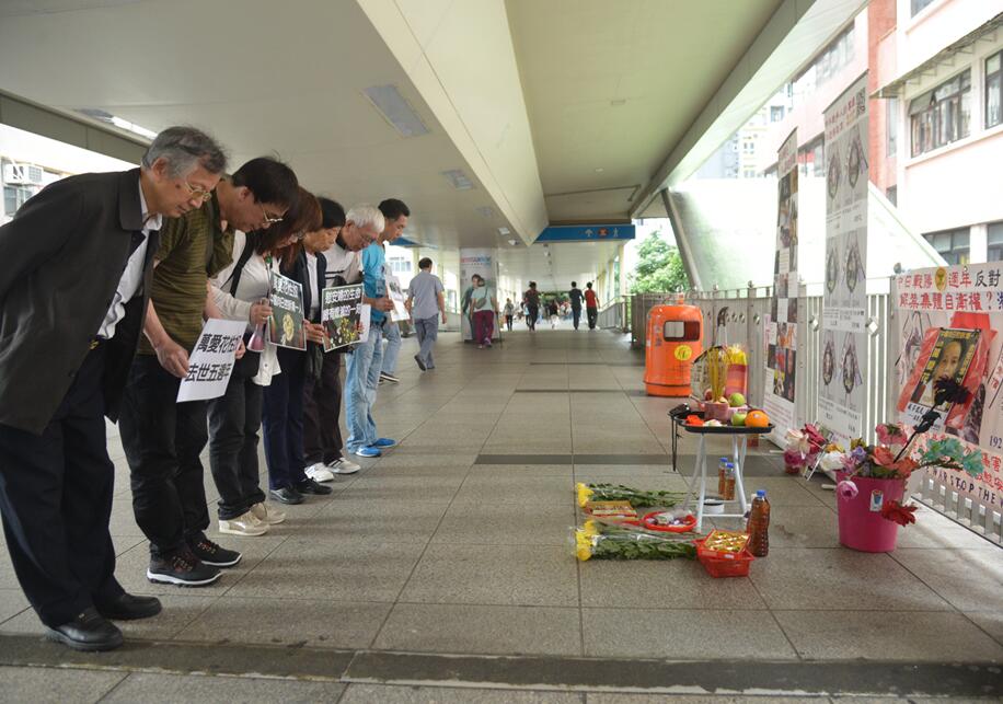 「歷史監察.網民自發」與原東江縱隊港九獨立大隊老游擊戰士聯誼會約10人,昨早上約11時許,在灣仔駱克道地鐵站往稅局行人天橋公祭慰安婦,出席人士先向日本侵華期間受害的慰安婦上香,並向部分受害者的相片鞠躬及奉上鮮花。