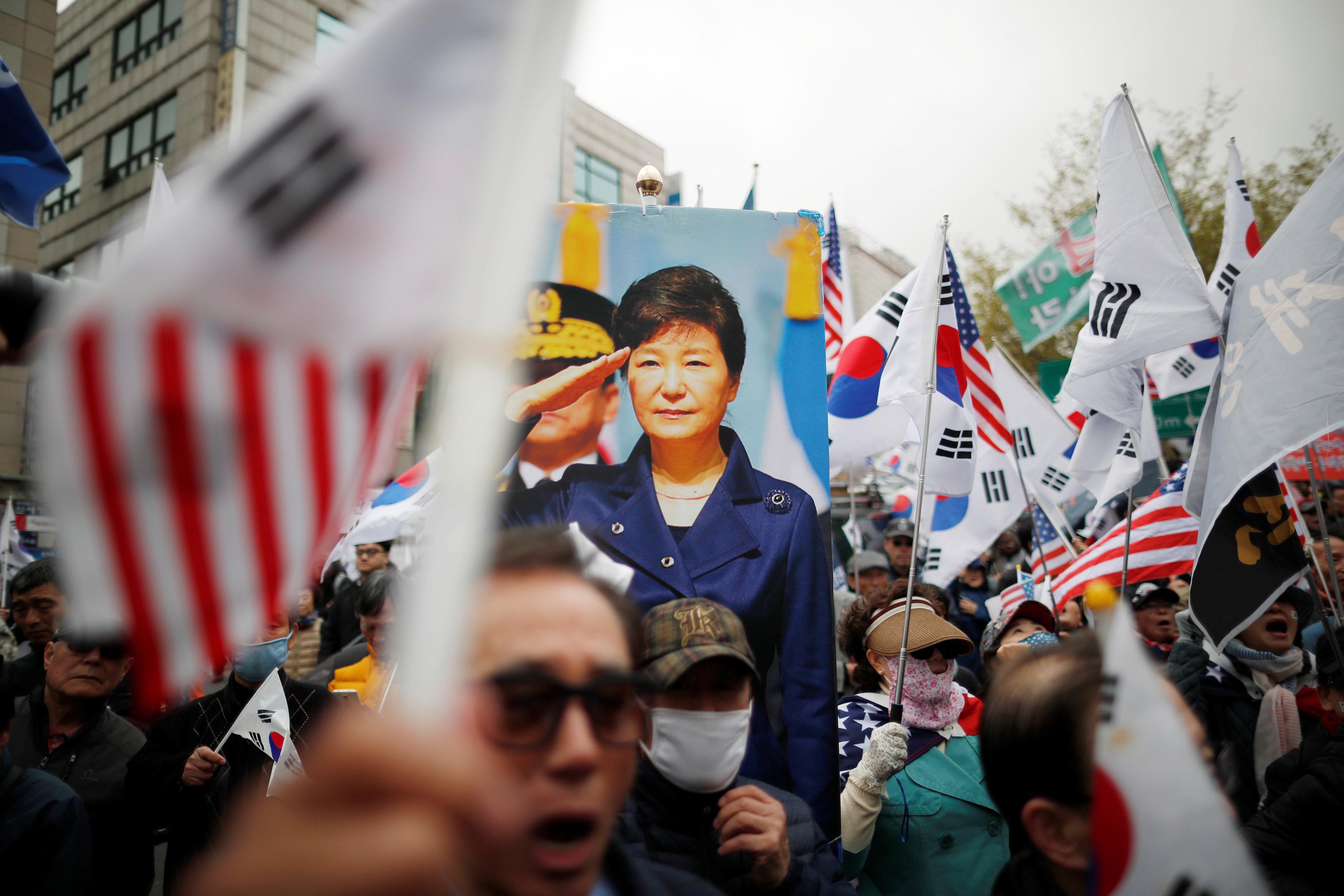 大批朴槿惠支持者昨天聚焦在法院外,高呼「营救总统!」「朴槿惠无罪!」等口号。据统计,集会总人数达2000多名。路透社