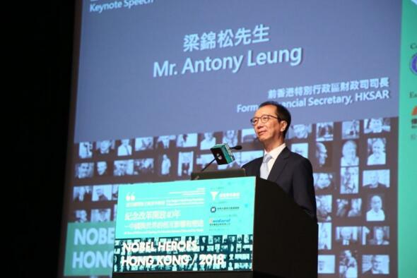 前財政司司長梁錦松於主題演講分享時表示,回想國家改革開放40年以來,在中央政府的領導下,成就是顯而易見、有目共睹的。中國作為現時第二大經濟體系,我們作為中國人,下一階段應該反思及定位自己在全球化下的能夠作出的貢獻。