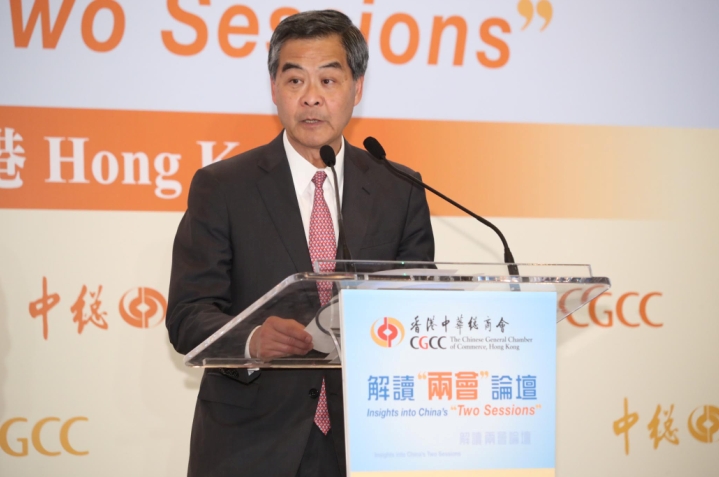 梁振英強調,香港與內地命運與共,香港社會應全面了解兩會期間的重大決策,加快融入國家發展大局,為國家效力。