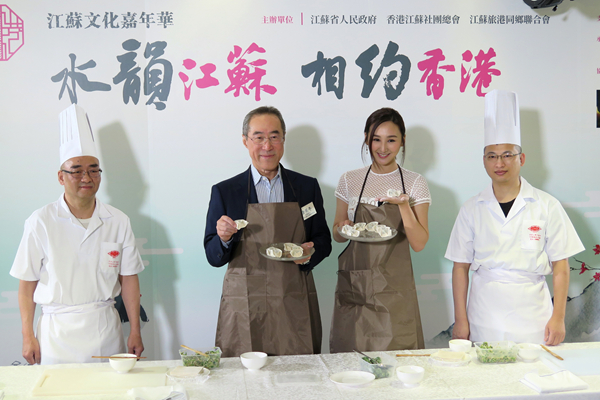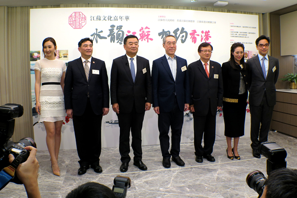 香港江蘇社團總會會長唐英年(右四)與一眾嘉賓為江蘇文化嘉年華主持揭幕儀式。