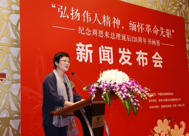 纪念周恩来总理诞辰120周年全国书画展组委会主任蔡娟娟女士致辞