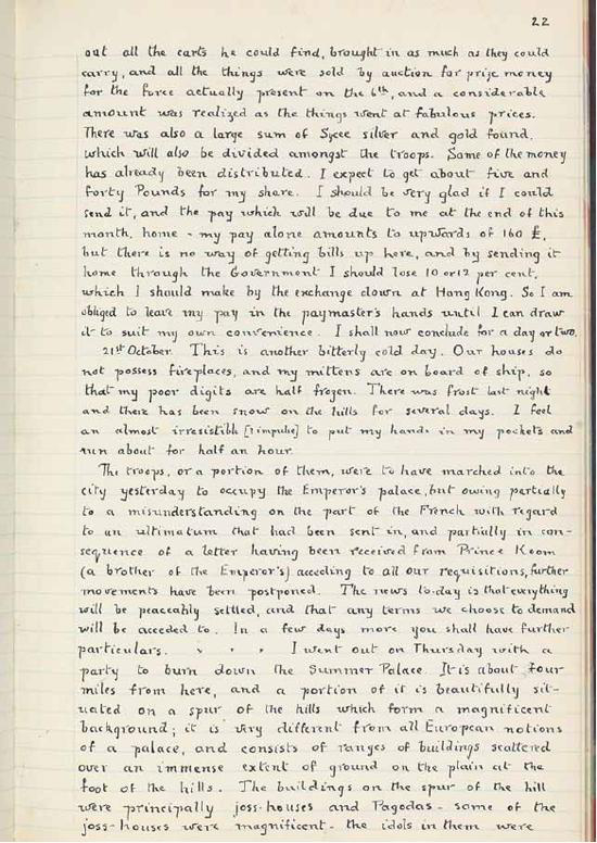 英國海軍上校伊萬的家書記錄了圓明園劫掠的過程。 網絡圖片