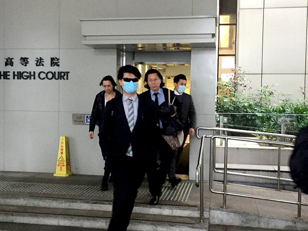 被告林倫慶(戴太陽眼鏡及口罩者)警誡下認人掟我又掟。