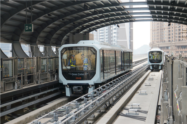據介紹,該項目將采用全自動無人駕駛的膠輪列車系統,列車由三菱重工負責生產。首批次合共4節列車車廂,連同專用的維修車輛,已於去年10月底由日本運抵澳門。