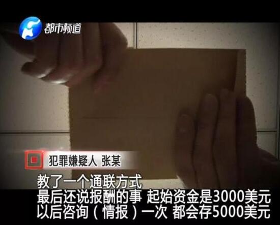 2017年经过审判,今年50岁的张某因犯间谍罪获刑15年。
