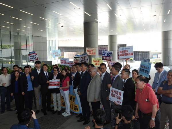 民建聯到立法會外請願,反對戴耀廷的「港獨」言論。 記者 林駿強攝