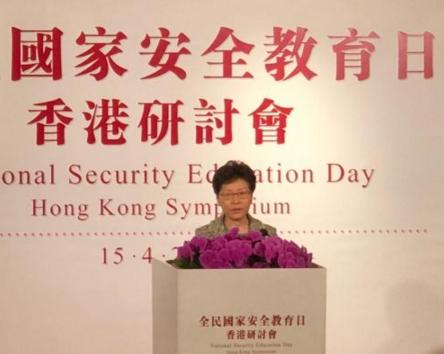 她強調本港有責任維護國家安全,國家安全同時涵蓋經濟、環境和網絡等多個範疇。她指出港府和每名熱愛香港的市民,都有責任全面準確確保一國兩制在香港沿着正確方向前進,向任何衝擊國家主權、安全、發展利益的行為說不,亦要培養下一代成為具國家觀念、富香港情懷和對社會有承擔的公民。