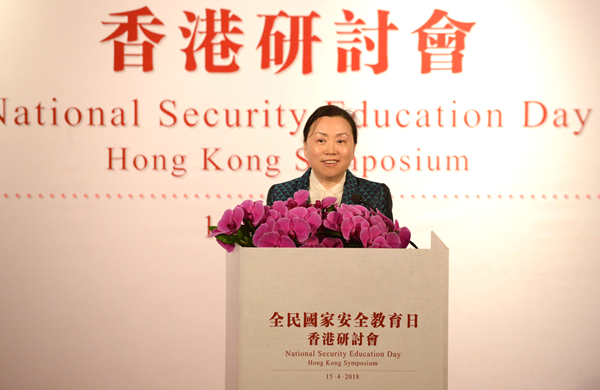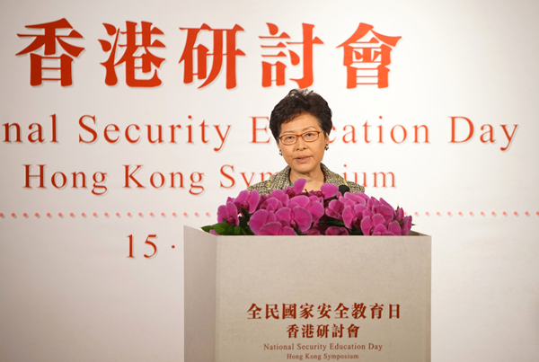 林鄭致辭時表示,香港特區是中華人民共和國不可分離的部分,香港有責任維護國家安全,這也是與香港本身利益完全一致的。「在香港,大家對國家安全的定義是比較模糊,對國家安全的觀念是相對薄弱。當中有歷史原因,亦可能是對國家安全的宣傳教育不足夠。另外亦有人把國家安全簡單地看成是軍事防衛的問題。」她希望能夠消除市民對國家安全的一些誤解,并以全民國家安全教育日為契機,深入開展有關國家安全的宣傳教育,切實增強香港大眾的國家安全意識,動員各界在各自的範疇做好維護國家安全的工作。