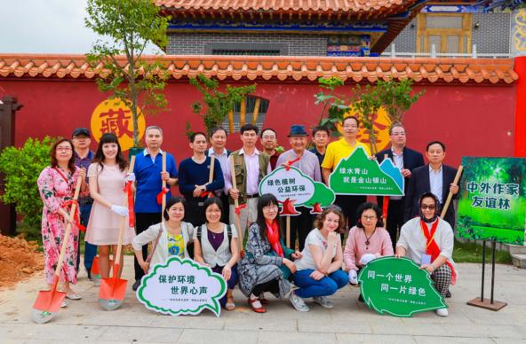 “中外作家交流营”采风团中来自美国的茶文化作家夏云峰,这是他第一次参加中外作家植树交流活动,他表示:“植树既能美化环境,又能增强人们的环境保护意识。而且,我们种下的树种里有被视为“神圣之树” 的菩提树,传说在2000多年前,佛祖释迦牟尼曾在菩提树下悟出真理,为无数众生找到了脱离生死轮回的真谛,终成正果。菩提树如此意义非凡,更是为这次中外作家交流之旅赋予了更特别的意义!所以,希望今天中外作家一起种下的友谊之树如同我们的友谊一样常青。”