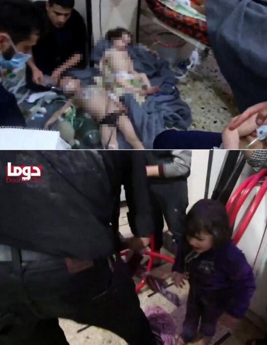 当地时间4月7日,叙利亚反对派武装控制的东古塔地区杜马镇遭到疑似毒气袭击,导致70余人丧生。随即,网上也流传出一些骇人听闻的视频内容:医护人员忙着给冲进医院的人浇水“清除残留毒物”;躺在地上的孩子“奄奄一息”。