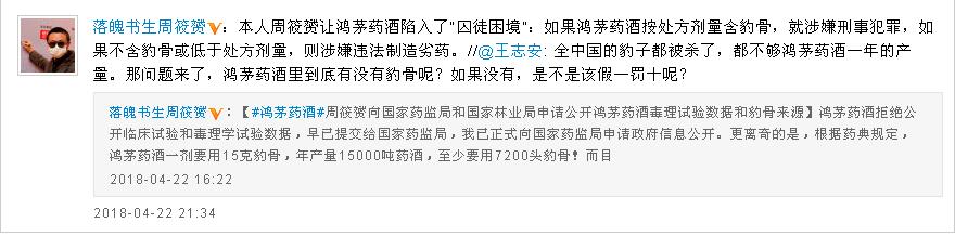 另外,该批文是2016年获得,那么从2006年至2015年,鸿茅药酒使用豹骨没有获得批准吗?《野生动物保护法》第48条规定,未取得专用标识利用国家重点保护野生动物及其制品会给予没收、罚款等处罚,乃至依法追究刑事责任。